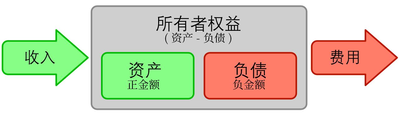 在深入理解科目类型之前,先简单回顾一下会计等式: 资产 - 负债 = 所有者权益 + (收入 - 费用)。